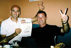 | 1997-1998シーズン前コンサドーレ札幌監督 2000年4月に来日、じょっぴんドーム興業に通訳のトーマス石川氏と参加。ファミリーの絆を誓う。 2000/4/29 |