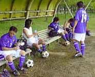 後半、ヤスヨンを下げ、BadDogを入れるとバランスは崩れ、立て続けの失点。さらにベンチは、負傷した鈴久名に変えて、この日、たまたま試合を見に来ていた榎木津ありすの幼稚園の先生、つぶやき(通称)をディフェンスラインに投入。しかし時遅く、気がつけば、もう何点入ったか解らない状態。じゃあ今日は2-2のドローと言うことで、とTERRA F.Cに炎の提案。しかし残念ながらしっかり覚えていやがって、0-6とやられまくりゲームは終了した。