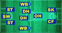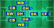 4人での守りかたにも馴れたら、最終的なベストな布陣は、3-6-1だと思っている。ゲーム中の戦術判断は中盤の斉藤&Gパンに任せ、彼らがDFラインに入ったりトップにあがったりすれば、フレキシブルに4-5-1、4-4-2、3-6-1、3-5-2、3-4-3と形を変えていける。
